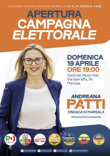 Domenica 19 aprile alle ore 19:00, al Centrale Music Hall (via Garraffa 54) è in programma l’apertura ufficiale della campagna elettorale della candidata a sindaca di Marsala Andreana Patti.