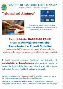 Al fine di potenziare il ventaglio di iniziative di solidarietà messe in campo con l’obiettivo di aiutare le numerose famiglie campobellesi che in questo momento stanno vivendo gravi difficoltà economiche a causa dell’emergenza Coronavirus, il sindaco Giuseppe Castiglione ha deciso di promuovere anche una campagna di Raccolta Fondi. L’iniziativa, in particolare, è rivolta alle attività economiche, agli imprenditori, alle associazioni e ai privati cittadini che vogliono donare un libero contributo in favore delle fasce sociali più deboli, nonché di quelle persone che rischiano di cadere in povertà a causa dello stop forzato alle proprie attività per via della contingente emergenza sanitaria.