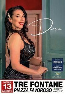 Dopo i concerti di Pompei, Bologna, Roma e Palermo, Daria Biancardi si esibirà a Tre Fontane in uno spettacolo che spazierà dal soul al funk, passando per il rhythm & blues, interpretando alcuni grandi pezzi della musica d’autore, quali “A chi mi dice”, “Bella senz’anima”, “Gloria” e “Think”. Il concerto è promosso dall’Amministrazione comunale guidata dal sindaco Giuseppe Castiglione con la direzione artistica di Gianvito Greco nell’ambito del cartellone “E… state con noi 2019” curato dall’assessore comunale Donatella Randazzo.