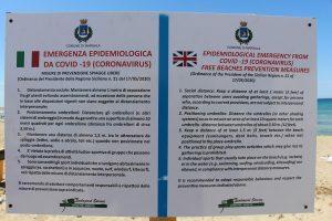 Apposita cartellonistica italiano/inglese è stata collocata in prossimità dei varchi di accesso in spiaggia al fine di informare i bagnanti sulle regole da seguire scrupolosamente e per evitare il rischio di contagio, così come obbliga l'Ordinanza del Presidente della Regione Siciliana (la n. 21 del 17/05/2020) che richiama le Linee guida nazionali anche con riguardo all'attività balneare. In più, l'Amministrazione comunale - sempre per favorire il rispetto delle misure anticovid - ha già avanzato richiesta alla Protezione Civile di assicurare due importanti servizi: la sorveglianza sulle spiagge (otto unità, in due turni, per tre mesi) che una sanificazione periodica dei siti sabbiosi fruibili liberamente.