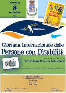Domani, 3 dicembre, al cinema Golden la proiezione del film: “Mio Fratello rincorre i Dinosauri” L’Amministrazione Di Girolamo celebrerà domani, martedì 3 dicembre, la “Giornata internazionale delle persone con disabilità. Con il coordinamento dell’Assessorato ai Servizi sociali, diretto dall’Assessore Clara Ruggieri, al Cinema Golden, in via San Giovanni Bosco, verrà proiettato il film “Mio fratello rincorre i Dinosauri” per la regia di Stefano Cipani e con interpreti Alessandro Gassman, Isabella Ragonese e Rosy De palma.
