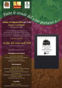 Sabato 22 febbraio 2020 alle ore 17.30 al Teatro Garibaldi di Mazara del Vallo, l’Istituto Euroarabo e l’Associazione Strada del vino e dei sapori Val di Mazara con il patrocinio della Civica Amministrazione promuovono la presentazione del volume di Rosario Lentini, Sicilie del vino nell’800, edito da University Press Palermo. L’autore è storico dell’economia siciliana dei secc. XVIII-XIX, autore di diversi saggi sui temi della nascita della borghesia industriale e imprenditoriale locale e straniera.