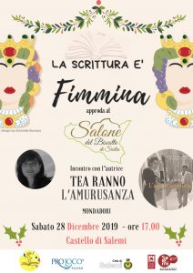Dopo l’appassionante ultimo incontro con la magistrato Simona Loiacono e il suo Albatro, sarà Tea Ranno, il 28 dicembre, ad intrattenere il pubblico di appassionati lettori con uno spaccato sociologico nella Sicilia di oggi e di ieri. L’Amurusanza (Mondadori), ultimo lavoro letterario della Ranno, sarà presentato alle ore 17 al castello di Salemi, racconta l’atto di ribellione di Agata, una donna di Melilli attorno alla quale ruotano le storie di numerosi altri personaggi contraddistinti certuni da una forte sensibilità altri dal gelido attaccamento al potere.