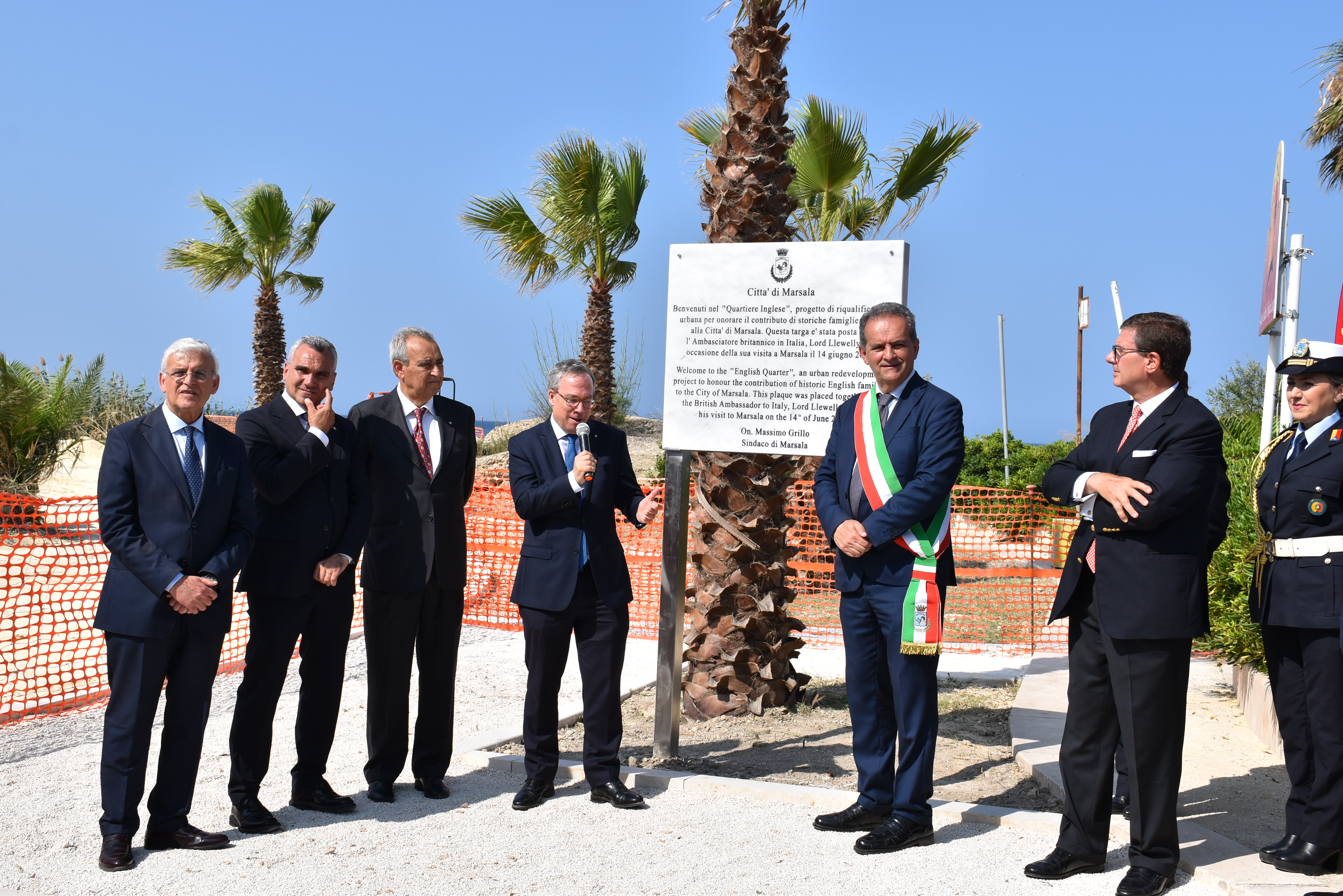 Questa mattina, alla presenza dell’Ambasciatore del Regno Unito in Italia, Lord Edward Llewellyn, è stata scoperta la targa inaugurale italo-britannica che avvia il percorso di valorizzazione di un’area storica della città, profondamente legata alla presenza inglese a Marsala. La targa è collocata davanti allo storico Molo Florio (i lavori di sistemazione sono in via di completamento) che rappresenta il cuore antico dell'intero “Quartiere Inglese”. L’idea progettuale sarà presentata nel pomeriggio alle Cantine Florio (ore 17:30) e sarà condivisa nei prossimi mesi con cittadini, operatori e stakeholder locali.